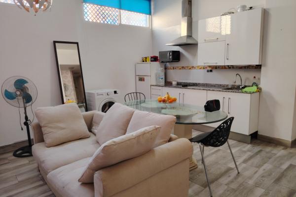 Situado en Torrox Costa, en la zona del Mercadona, se encuentra este apartamento en planta baja de 2 dormitorios + un estudio a 250 metros de la playa. Por la zona comunitaria del inmueble accedemos a la puerta de las 2 viviendas y ahí disponemos de un pasillo privado con el acceso a las dos viviendas con entradas independientes. Tanto el apartamento como el estudio se venden amueblados. El apartamento, consta de dos dormitorios, un baño con ducha y el salón comedor con cocina abierta muy espacioso y moderno. El estudio, consta de un gran espacio para la cocina, salón comedor y cama, a parte un baño con ducha. Originalmente era un local y se ha reformado a este estado actual, no dispone del cambio de uso y esto sería a cargo del comprador.
