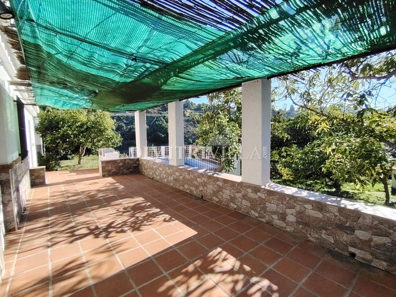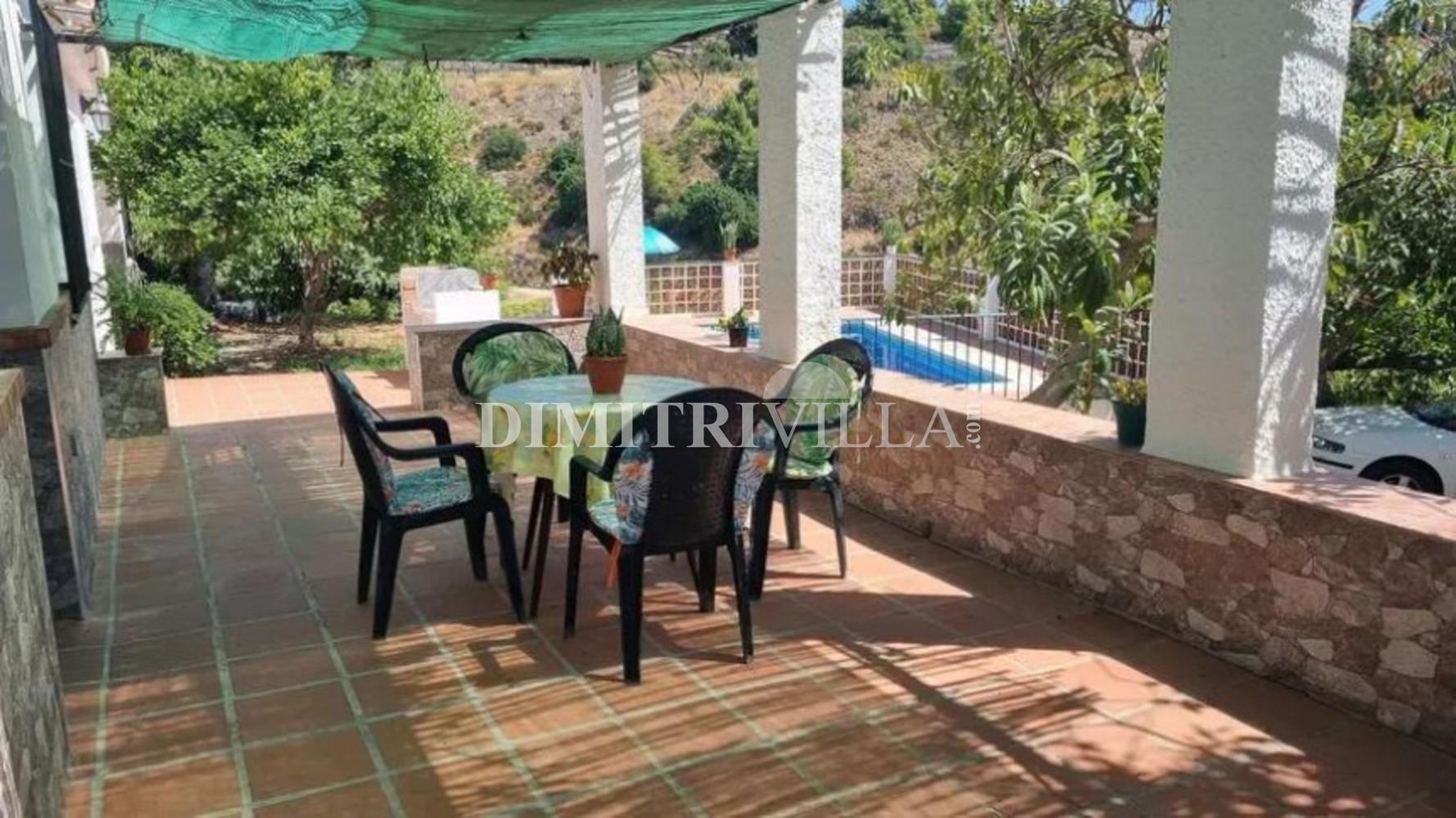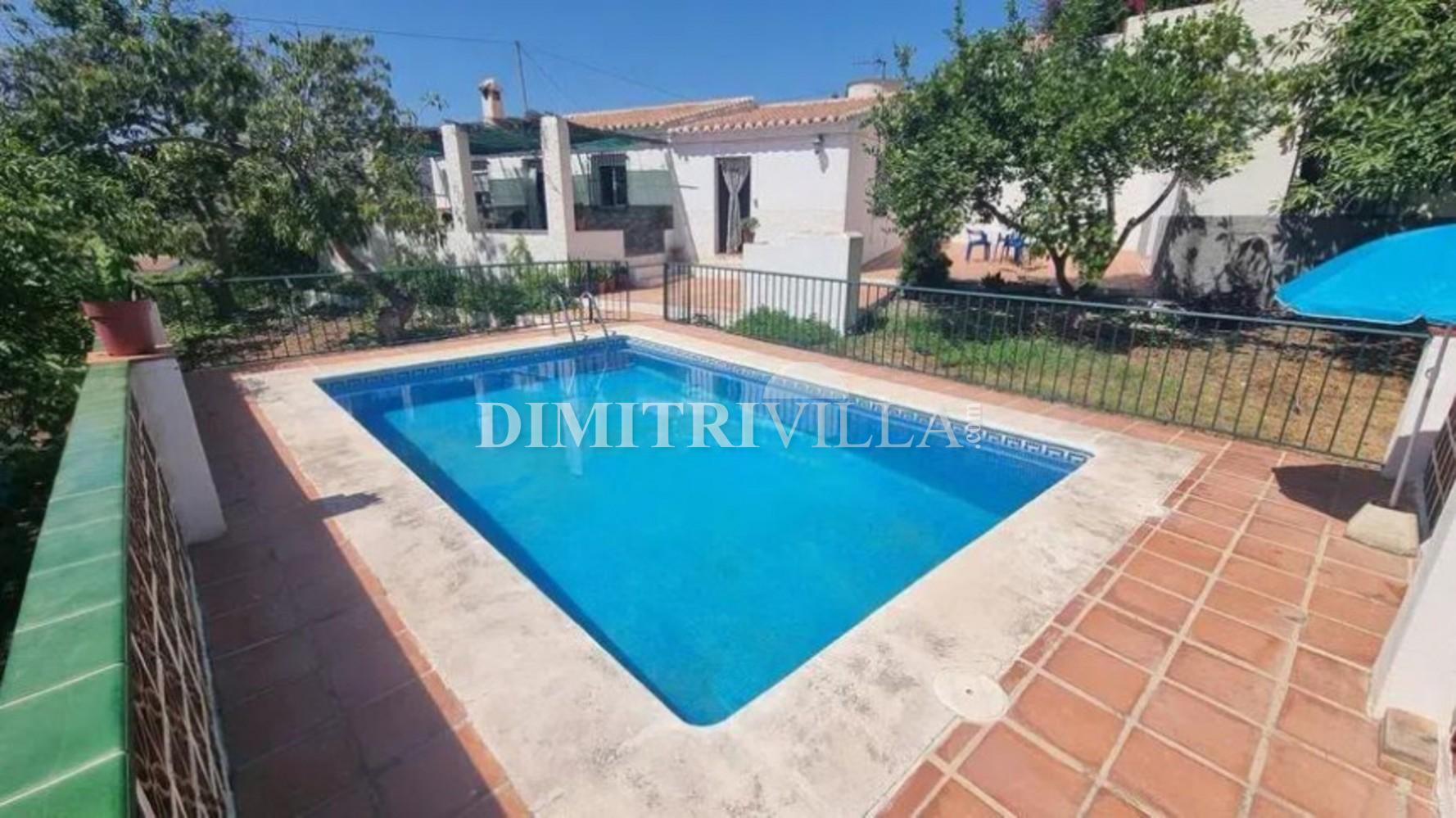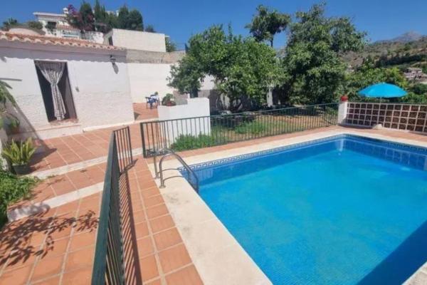 Casa independiente Frigiliana, con solo 400 metros de carril pavimentado Rodeado de naturaleza de árboles tropicales a 1km del bonito pueblo de Frigiliana y 4,5 Km de las playas de Nerja. Bonita casa de 155 m2 construidos en una sola planta sobre una parcela de 1.800 m2 con mucha privacidad. Cuenta con un salón con chimenea, cocina amueblada, cuarto de baño, tres habitaciones, varias terrazas con zona de barbacoa y piscina con mirador. Además dispone de una amplia habitación separada de la casa pricipal convertile en apartamento o en una amplio estudio de invitados. Distintas zonas de aparcamiento dentro de la parcela, excelentes vistas y orientación sur Es una oportunidad que no puedes dejar escapar.