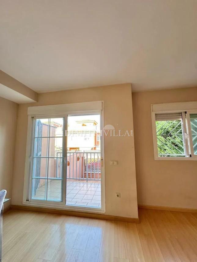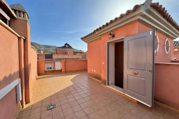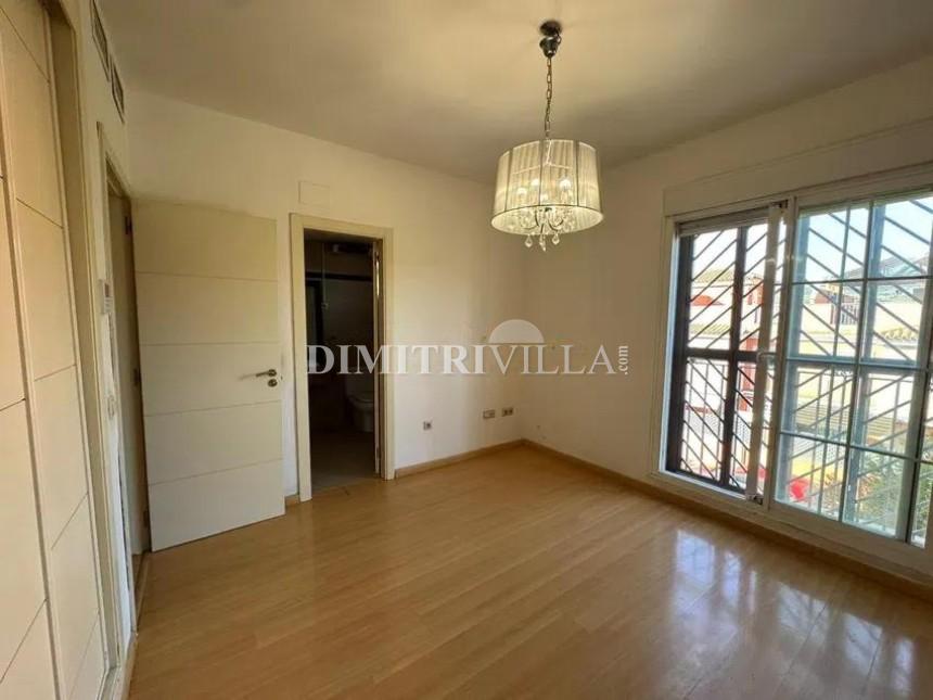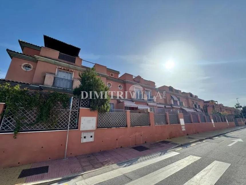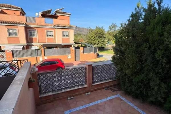 Casa adosada en Huerta Nueva, Málaga, con una superficie construida de aproximadamente 200 m2. rodeada de amplias zonas verdes. Distribución de la vivienda: •Sótano: acceso directo a la vivienda, con espacio diáfano para sala de usos múltiples, ventilación natural y conexión directa a dos plazas de aparcamiento cubierto. •Planta baja: cocina independiente, lavadero, comedor con salida al patio trasero, aseo y acceso por un patio delantero privado con entrada directa a las zonas comunes. •Primera planta: tres dormitorios con armarios empotrados y dos baños completos, uno de ellos en suite en el dormitorio principal. •Terraza/Solárium: Gran espacio soleado Urbanización: Residencial privado con piscina comunitaria y áreas ajardinadas. Entorno y servicios cercanos: •Amplias zonas verdes con jardines y áreas de juego. •Parada de autobús a 2 minutos a pie. •Mercadona a 9 minutos andando o 2 minutos en coche. •Acceso rápido y cómodo a la autovía. •Próximo a múltiples comercios, instalaciones deportivas y otros servicios.