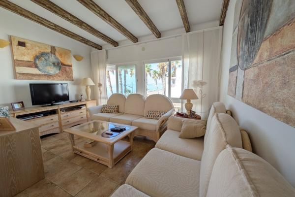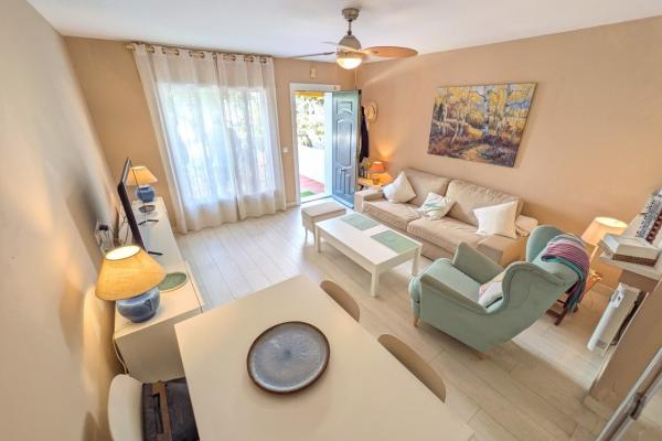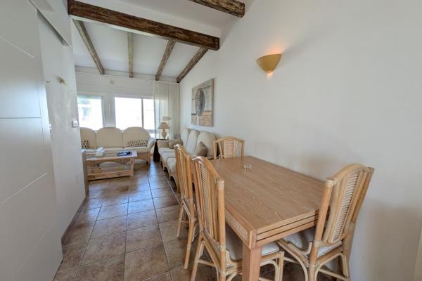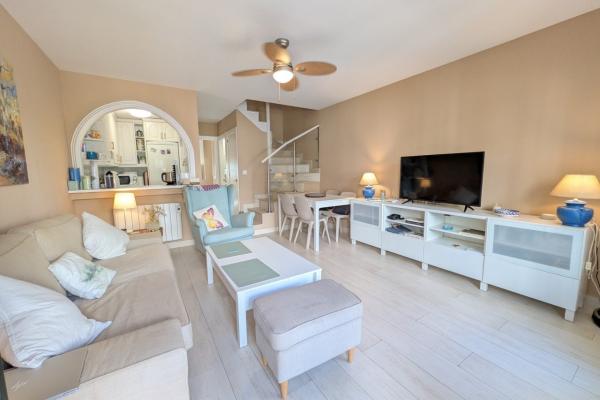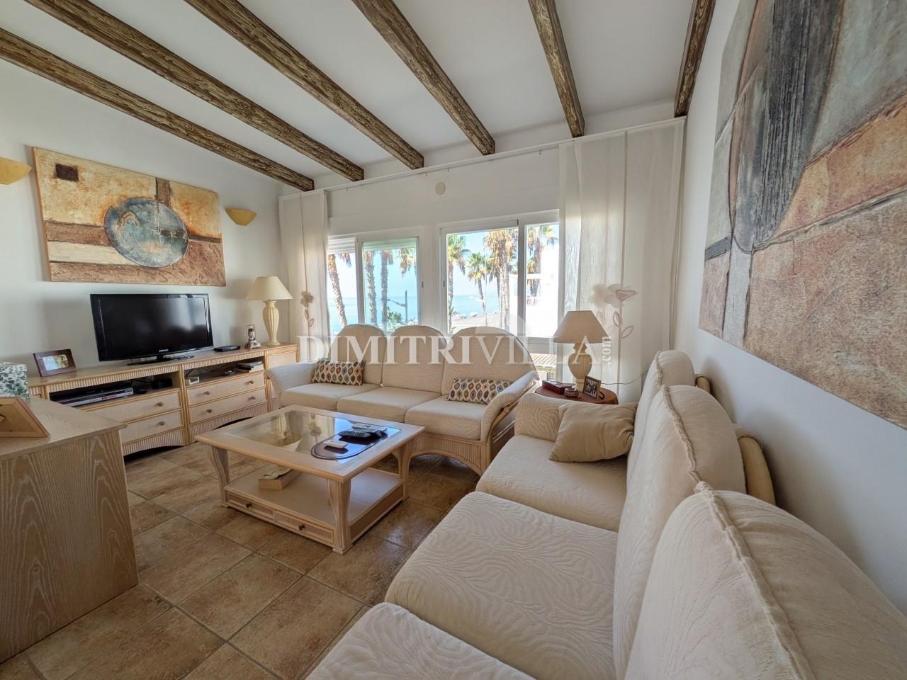 À côté de la promenade À deux pas de la mer , cette élégante maison de ville située dans la prestigieuse urbanisation Laguna Beach de Torrox Costa vous attend, l'une des plus reconnues pour son emplacement privilégié et ses services exceptionnels La propriété est située sur le front de mer, avec un accès direct au sable, offrant une vue imprenable sur la mer Méditerranée depuis ses deux terrasses principales Cette propriété unique se distingue par son espace et son agencement, avec deux salons, trois chambres, deux salles de bains avec douche et un WC supplémentaire Il dispose également de deux cuisines, d'une grande terrasse au rez-de-chaussée, d'une autre au premier étage et d'un petit débarras Les deux terrasses offrent une vue magnifique sur la mer, et le salon supérieur, qui bénéficie de vues panoramiques spectaculaires, peut facilement être transformé en une quatrième chambre spacieuse ou un bureau. La maison est vendue entièrement meublée, avec un style soigné et une décoration de bon goût, prête à emménager ou à commencer son exploitation touristique immédiatement L'urbanisation de Laguna Beach est l'un des complexes résidentiels les plus complets de l'est de la Costa del Sol, avec cinq piscines (une olympique et une chauffée), quatre courts de tennis, un court de paddle-tennis, de grands jardins, un espace pour enfants et sa propre galerie marchande. qui offre confort et loisirs sans quitter le lieu Une magnifique opportunité de profiter d'une maison exclusive en face de la mer, parfaite comme résidence habituelle, résidence secondaire pour le repos ou investissement à haute rentabilité pour la location de vacances dans l'un des meilleurs emplacements de Torrox Costa Frais d'agence non inclus dans le prix
